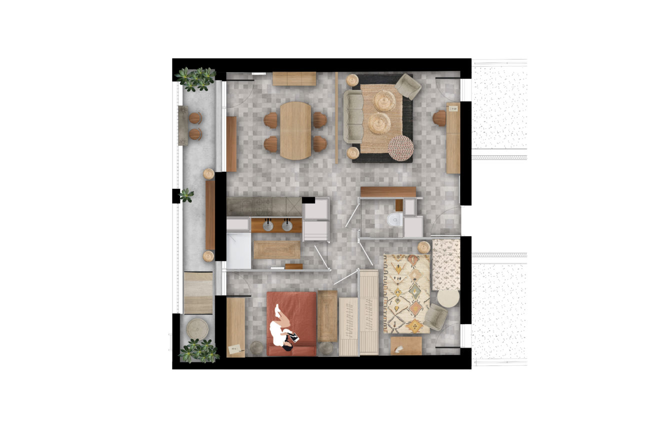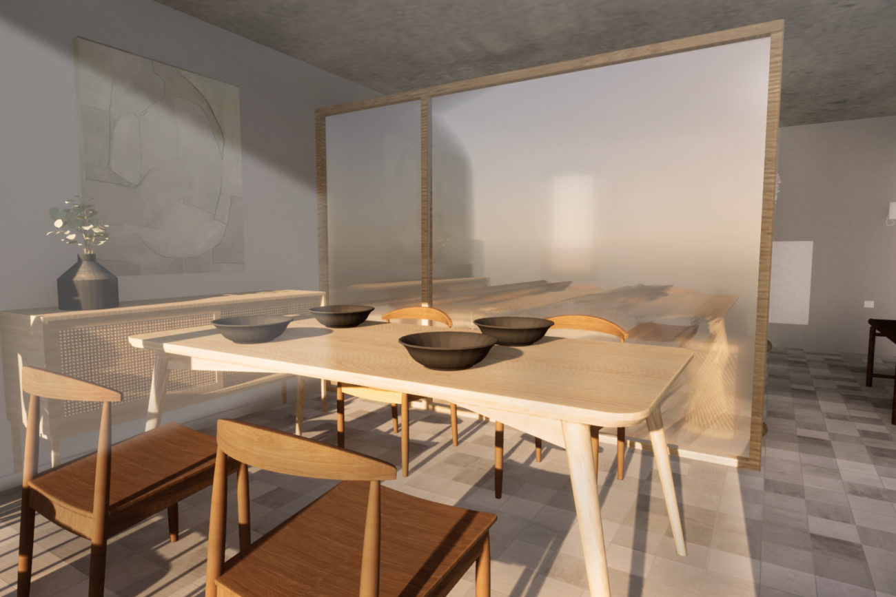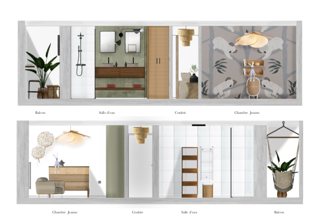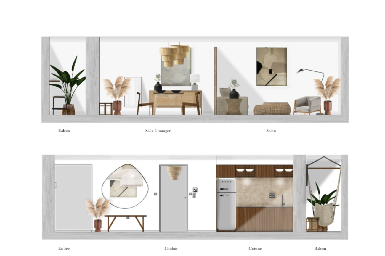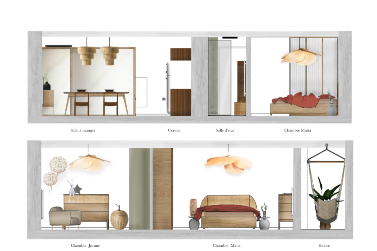 Ici, la cohérence et l’harmonie à travers les espaces à l’aide d’un même fil conducteur au niveau des matériaux ainsi que des couleurs sont essentielles dans ce projet.